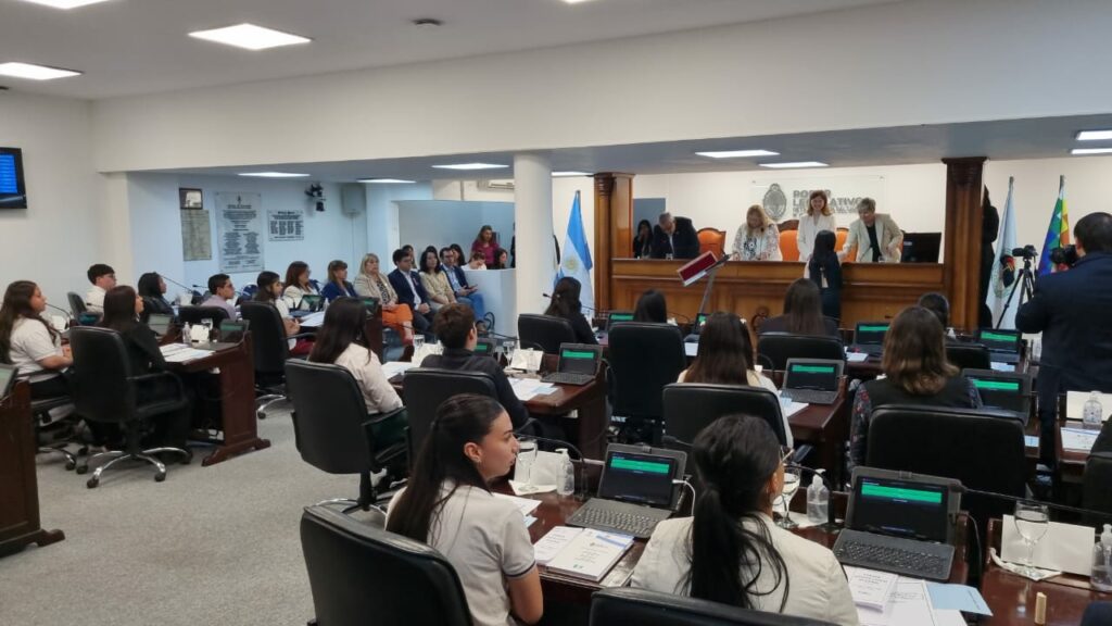 La ministra de Educación, Sofía Naidenoff, y la presidente del Poder Legislativo del Chaco, Carmen Delgado, encabezaron este jueves, desde el recinto de la Legislatura Provincial, el acto de toma de juramento a parlamentarios juveniles, en el marco del programa Poder Legislativo Juvenil 2024. En esta oportunidad, asumieron 32 estudiantes de 13 escuelas secundarias de la provincia como parlamentarios, quienes procedieron además a elegir a las autoridades: presidente Mauricio Morales Uechi, vicepresidente primera Milagros Agostina Correa y vicepresidente segundo Eduardo Torres. Asimismo, se fijó el calendario para las próximas sesiones, programadas para el 31 de octubre, el 14 y el 28 de noviembre.